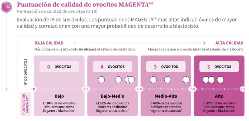 • Resultados de MAGENTA™: 4 óvulos de calidad baja-media, 3 óvulos de calidad media-alta, 3 óvulos de alta calidad