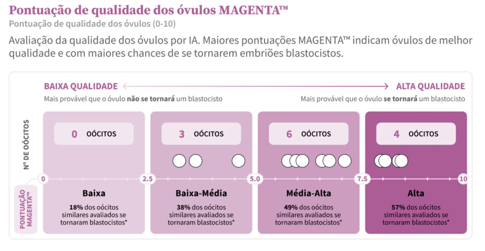 O MAGENTA™ fornece insights objetivos sobre a qualidade dos oócitos, ajudando os profissionais a esclarecer essa distinção e a tomar decisões mais direcionadas e seguras sobre o que fazer a seguir.